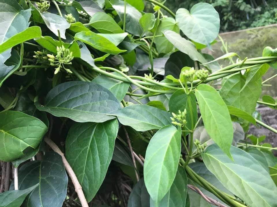 Mỏ quạ dùng ăn bông và ăn trái là một loài dây leo, lá hình trái tim, thường ra bông từ tháng 9 đến cuối tháng 11 âm lịch là tàn. Hoa mỏ quạ mới nở màu trắng tinh, khi sắp tàn chuyển sang màu vàng. Trái màu xanh giống như trái gòn, to bằng cẳng cái, phần đuôi cong lên giống như cái mỏ của con quạ nên mới gọi là mỏ quạ. Khi trái già, da sẽ nứt ra, hột kết dính với một số lông tơ bay đi khắp nơi để tiếp tục tạo thành cây con vào mùa mưa năm sau.