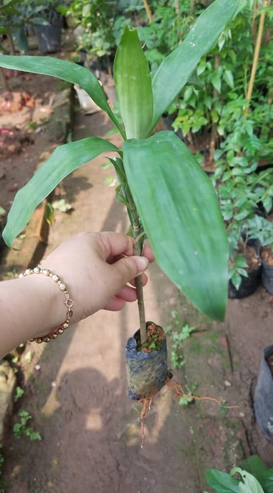 Lá: Mọc thành từng cụm từ vị trí thân thể trở đi, hình dáng của lá tương tự như mũi mác. Chiều dài trung bình của mỗi chiếc lá là từ 20cm đến 30cm, phiến lá rộng từ 3cm trở lại. Hệ thống gân lá sắp xếp song song, phần cuống lá dài trung bình 10 cm. Tổng thể lá nhìn tương đối to và thon dài.