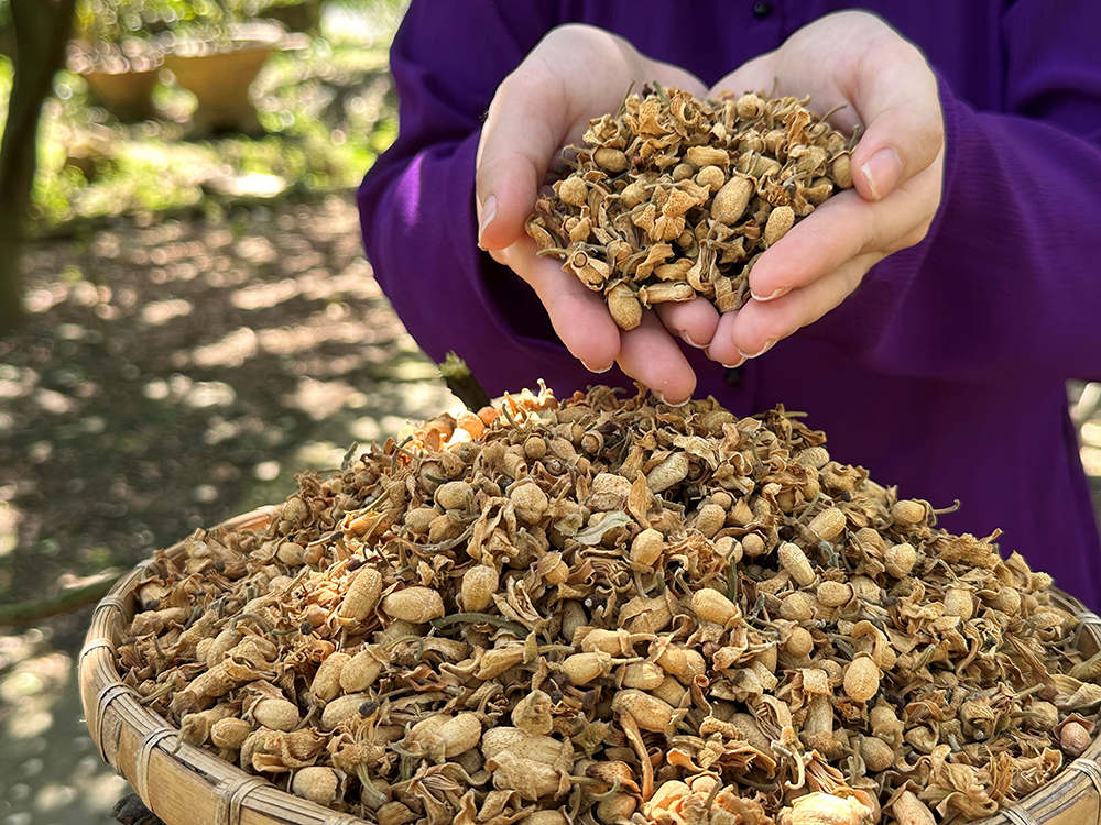 - Có tác dụng tiêu Äá»m, thông Äại tiá»n: Hoa bưá»i 4g, hoa Äáºu má»t bát, nưá»c gừng ná»a thìa, ÄÆ°á»ng phèn má»t thìa. Hoa bưá»i rá»a sạch cho và o ná»i Äung khoảng 10 phút sau Äó bá» bã lấy nưá»c. Cho tiếp nưá»c gừng, ÄÆ°á»ng, hoa Äáºu và o rá»i Äun tiếp sau Äó lấy ra Än.