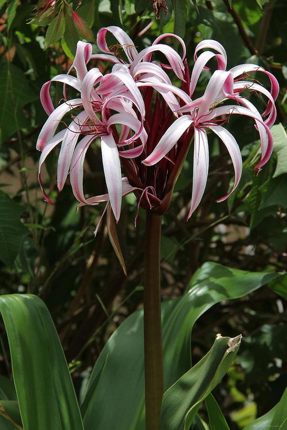 – Đại Tướng Quân Hoa Đỏ nổi bật nhờ những chùm hoa màu trắng hồng mang hương thơm dịu nhẹ trên nền xanh thẳm của lá tạo nên một gam màu đẹp mắt. Hoa có dạng ống, dài 15 cm mang 6 cánh hoa và đài hoa, mọc xòe ra để lộ phần nhụy hoa màu đỏ. Bề mặt trên của hoa có màu trắng hồng với sọc màu hồng mặt dưới.
